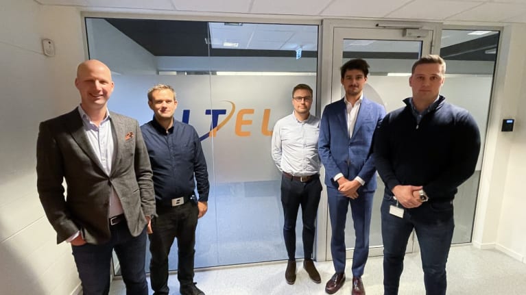 Fra venstre: Morten Kristiansen og Ole S. Jorstad fra Eltel, Bjørnar Strømme, Tim Peelen og Alexander Monsen fra Siemens.